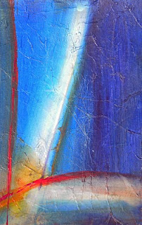 Here are a few works from those blurred days of unbridled painting. The one on the left is called "Sybil's Escape" (see all the faces??) and measures 7.5" x 15.25" done with acrylics and charcoal on 300-lb Arches watercolor paper. The top right painting is called "Sunset 1" and is a 12" x 12" x .75" canvas; the bottom right painting is called "Sunrise 1" and is 12" x 12" x .75". of these are painted with acrylic paints.